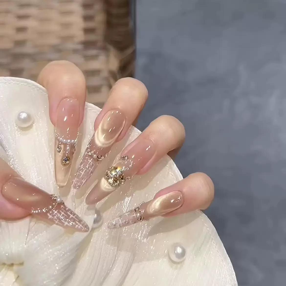 小狗純手工穿戴甲,秋冬法式貓眼款!中長甲型修飾手型,溫暖貓眼光澤隨光變幻,搭配精緻貓爪飾,可愛又顯白。醫用膠片貼合舒適,持久不易掉,輕鬆打造高級感美甲,日常約會都適合